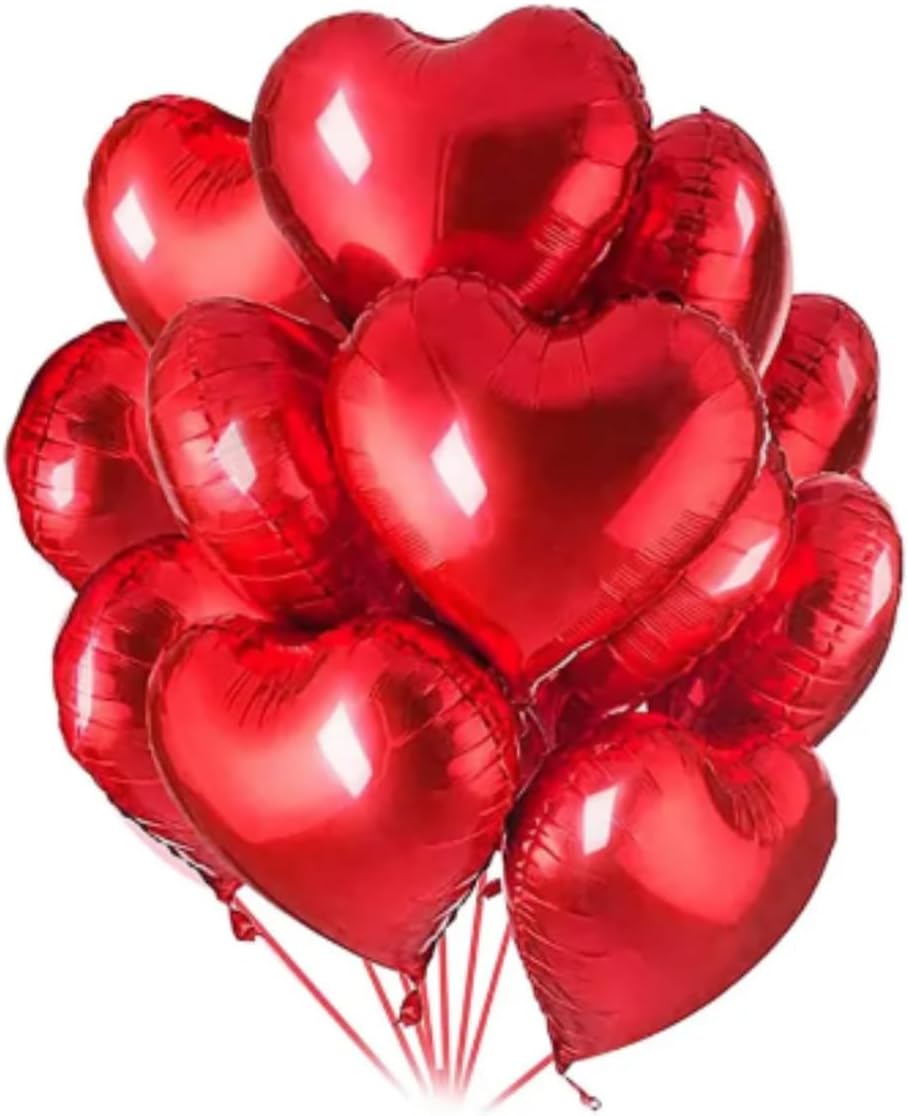 Kit com 10 Balões Metalizados em Formato de Coração (45cm)